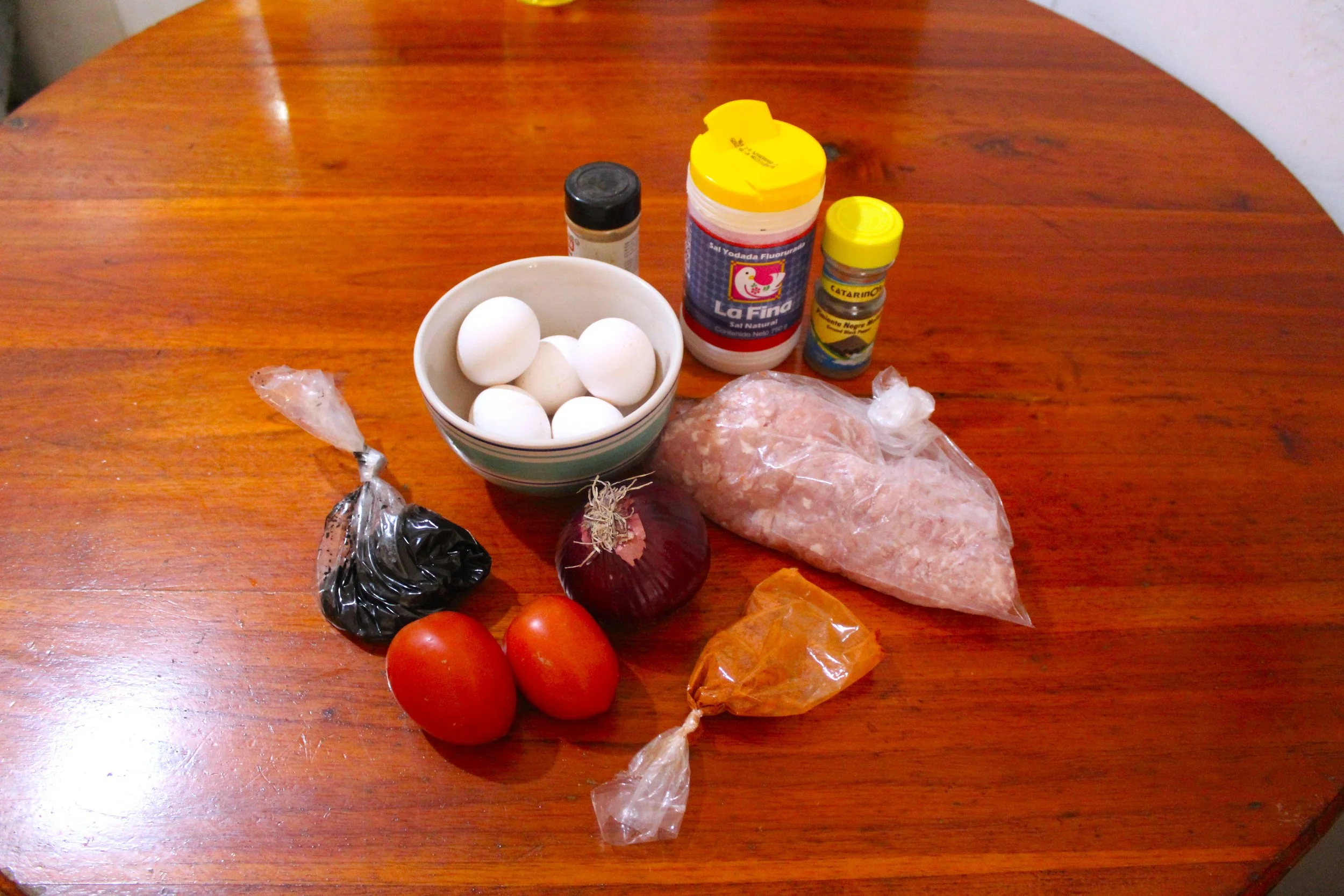 In a pan, cook the ground pork over low heat. Stir occasionally so it does not stick to the pan.